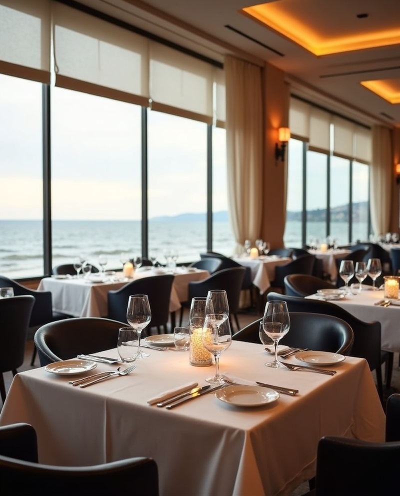 Iluminação intimista, mesas confortáveis e o som do mar criam o ambiente ideal para encontros marcantes.